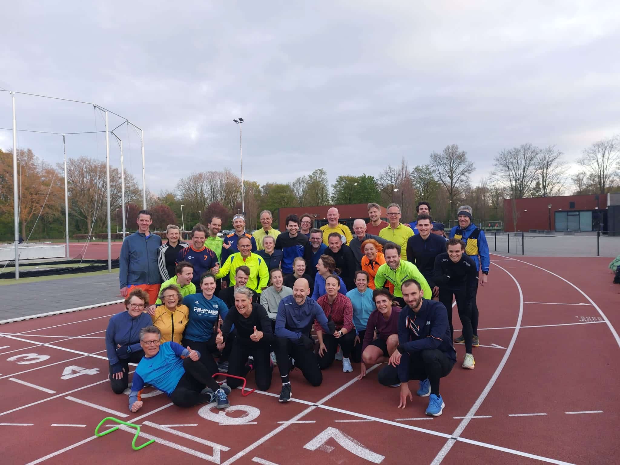 De interval- en duurloopgroep splitsen zich op na het gezamenlijke deel.