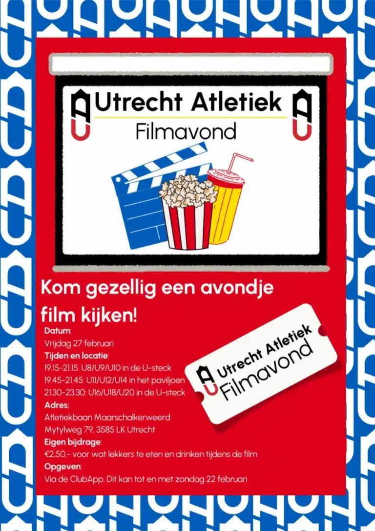 2 februari 2026 · Jeugdnieuws, NieuwsOp vrijdag 27 februari organiseren we een gezellige filmavond voor alle jeugdgroepen van Utrecht Atletiek! We draaien drie filmrondes, ingedeeld... lees verder