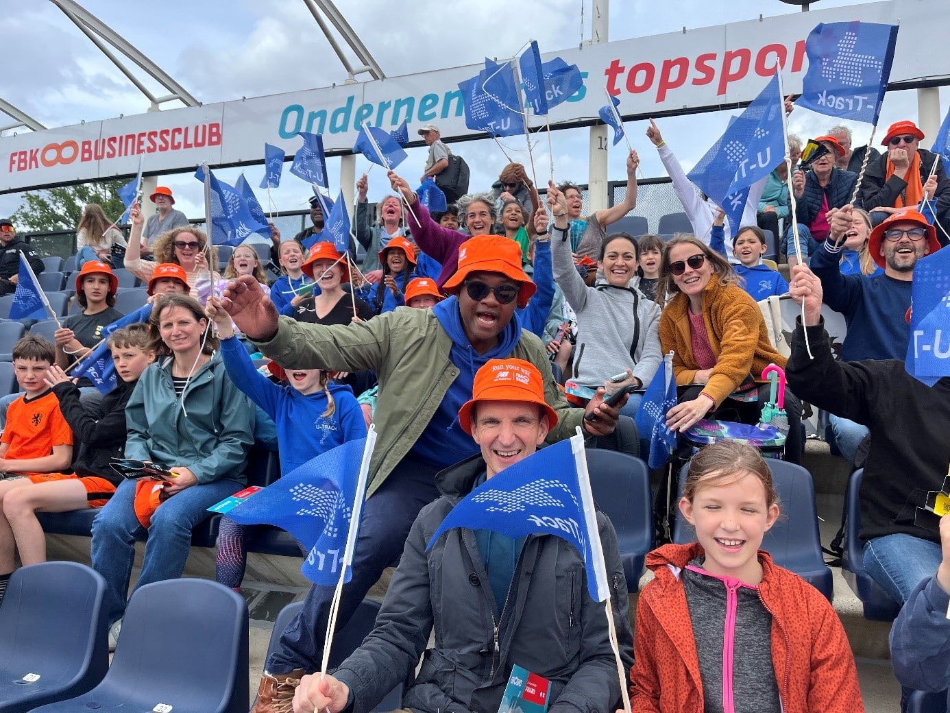 Vorige week zijn we met 46 U-Trackers naar het Fanny Blankers Koen Games gegaan. Dat is een internationaal topevenement waarbij de beste atleten tegen elkaar moeten opnemen. Dit werd mede mogelijk gemaakt door de coördinator van Amaliapark: Clayde en ouders van Leidsche Rijn, zoals Emelia, Malvina en Marloes. Bepakt met vlaggen, trommel en een goed humeur stapte we op een bus in Leidsche Rijn. De reis verliep soepel en kwamen al gauw aan in Hengelo. Daar zagen we para-atleten, zoals Fleur Jong, zij sprong maar liefst 6,5. meter. Vanuit de tribune zagen we ook U-Track vrijwilligers, die hielpen mee bij het dragen van mandjes en we konden genieten van de sfeer. Vooral toen Femke Bol, Sifan Hassan en de 4x100m estafette werd gelopen. Het geluid van het publiek golfde vanaf de start mee rond met de atleten. Na het atletiekspektakel moesten we een tussenstop maken bij de McDonald's, wat erg ongebruikelijk is. Het evenement had namelijk te weinig voedselvoorziening geregeld. Al met al hadden we erg genoten de waanzinnige sfeer.