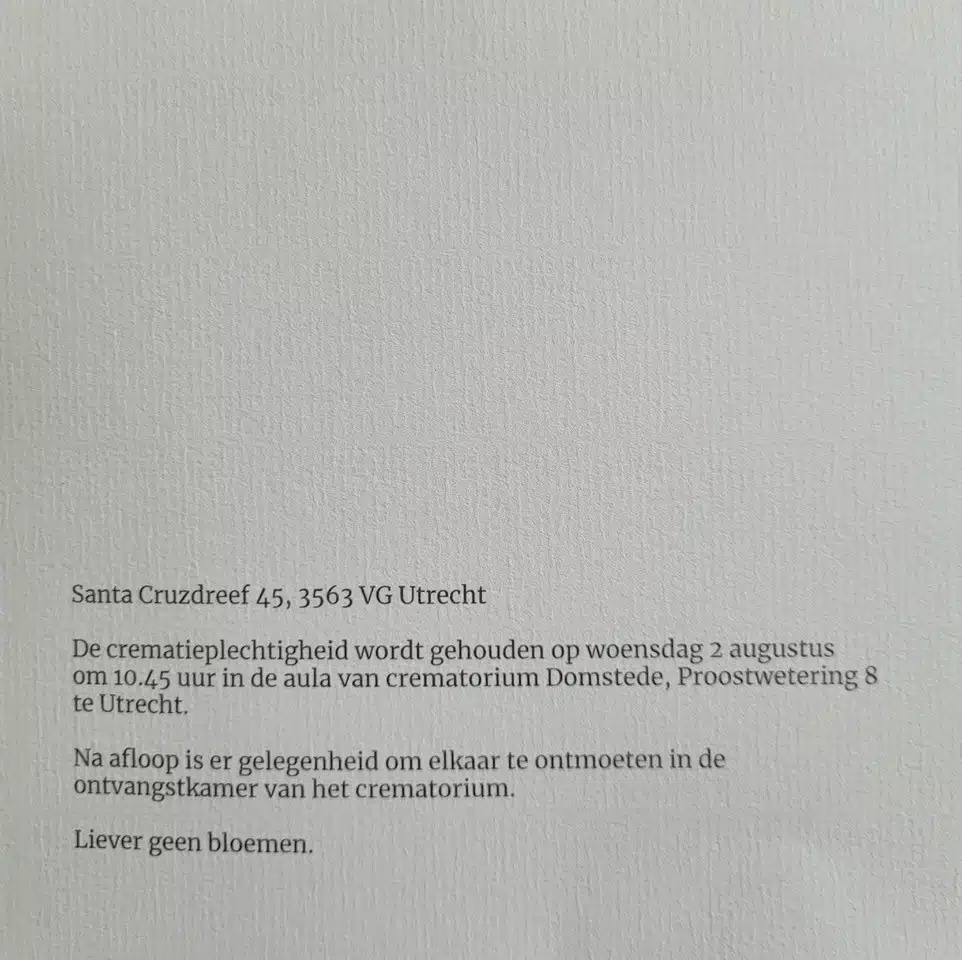 Namens U-Track / HLG zal op 2 augustus het woord gevoerd worden, zoals door de familie gevraagd.