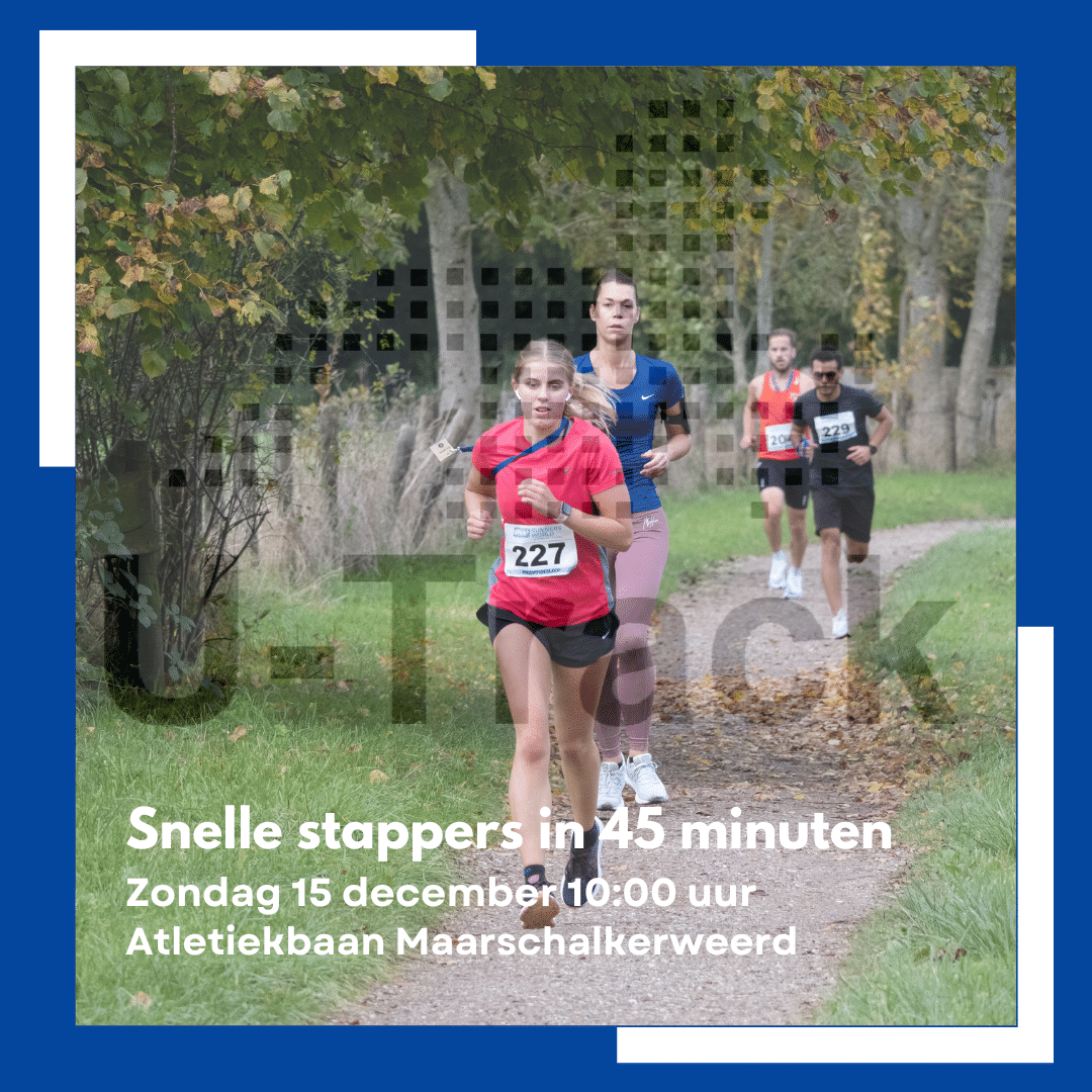 Op zondag 15 december organiseer ik 'Snelle Stappers in 45 minuten', een gezellige hardlooptraining speciaal voor ouders.