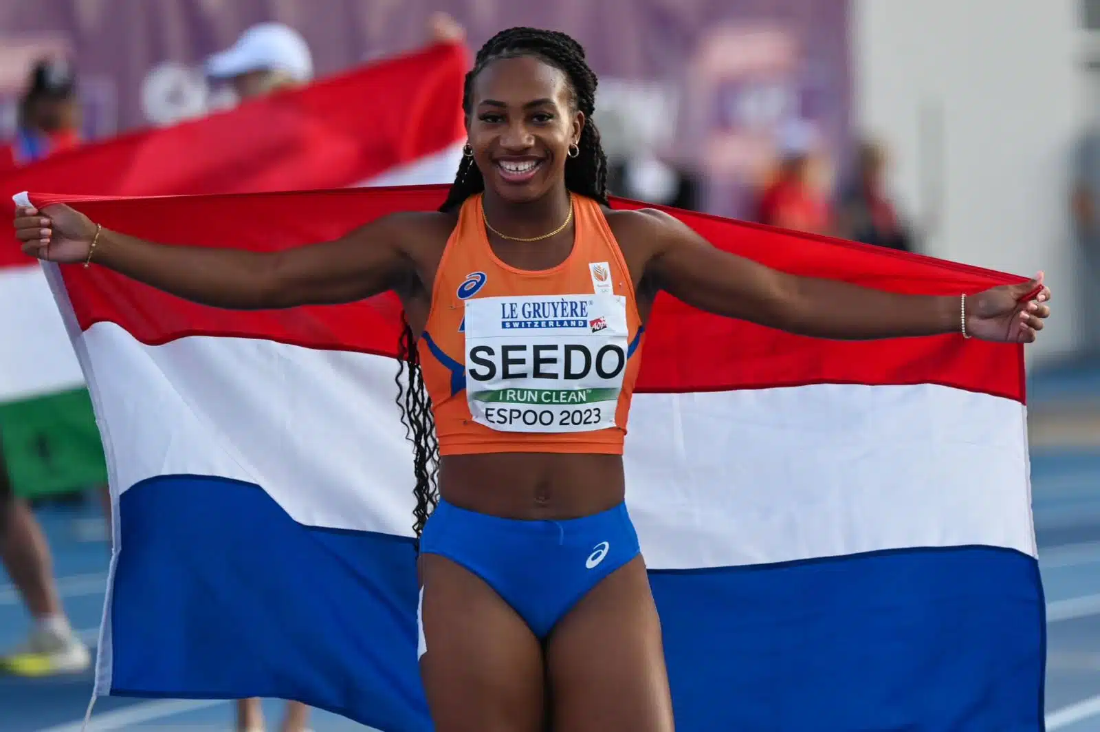 GOUD, een Europeese titel op de 100 meter voor N'ketia Seedo in 11.22s. Op het EK onder 23 jaar in Espoo, Finland.