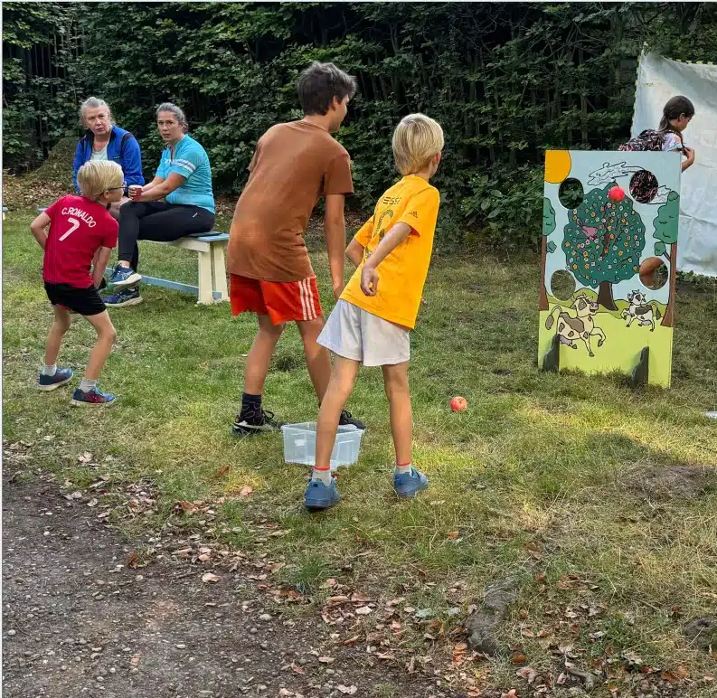 Kinderen leefden zich uit bij het ‘appel werpen’. Het bleek nog een hele kunst om de ballen goed te mikken.